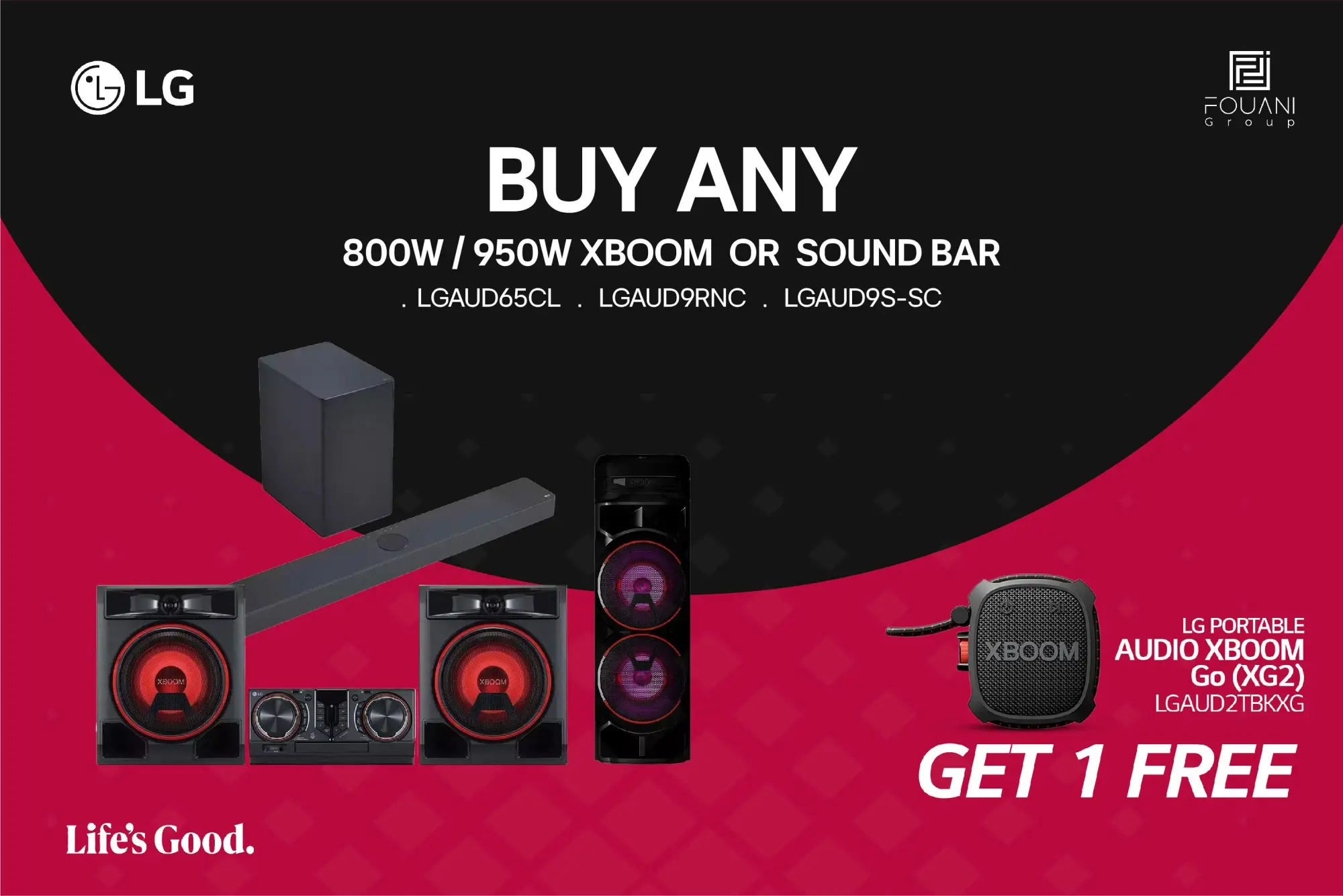 Buy LG Audio 800W or 950W XBOOM And Get 1 Free LG Portable Audio XBOOM GO-XG2