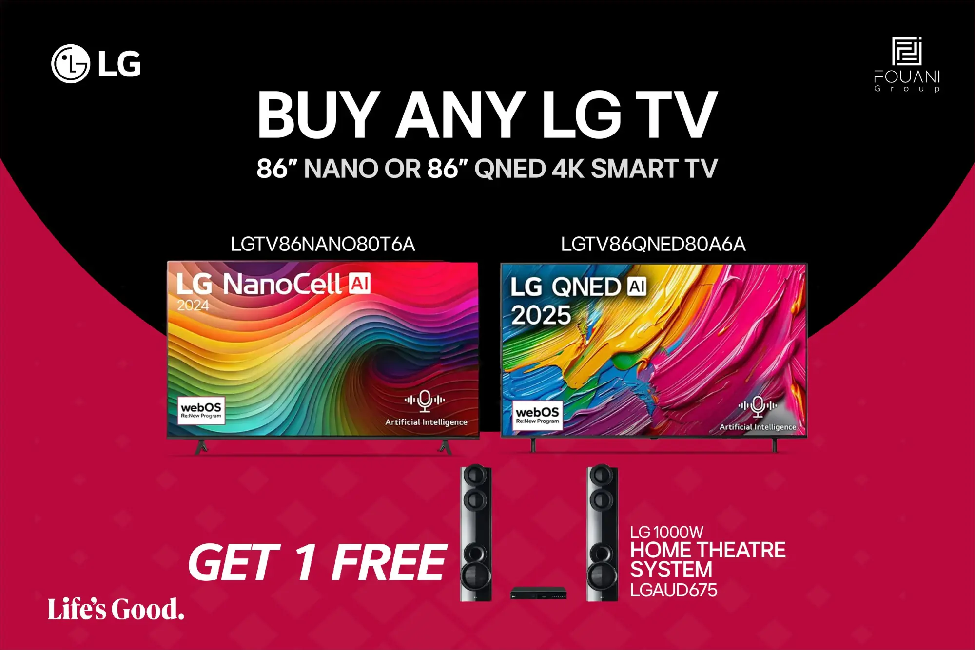 Buy Any Of The Selected 86 Inch LG TVs (Nano & QNED) And Get 1 Free LG Home Theater System 1000W