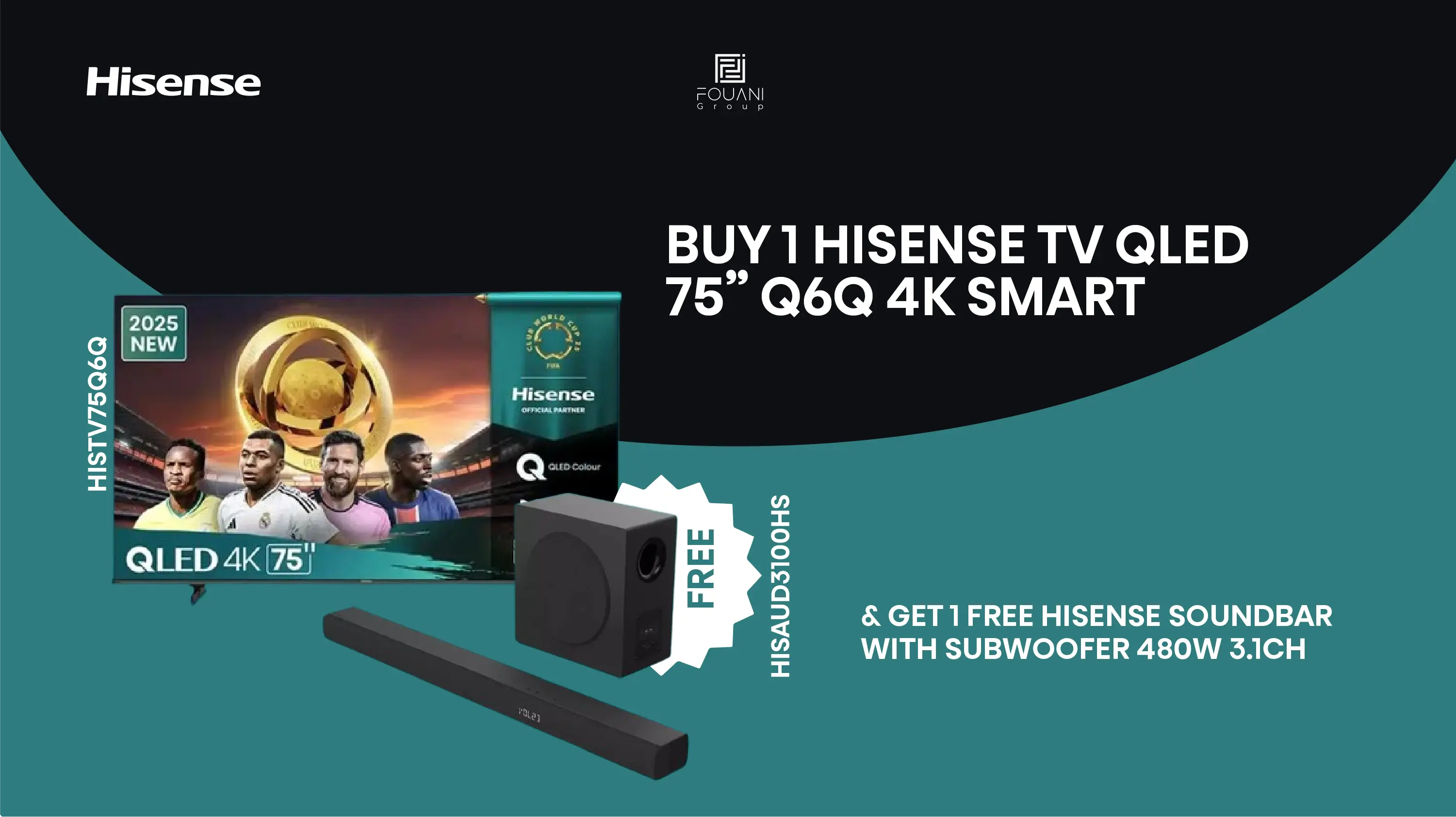 Buy Hisense TV QLED 75 Inch Q6Q 4K Smart And Get Free Hisense Soundbar with Subwoofer 480W
